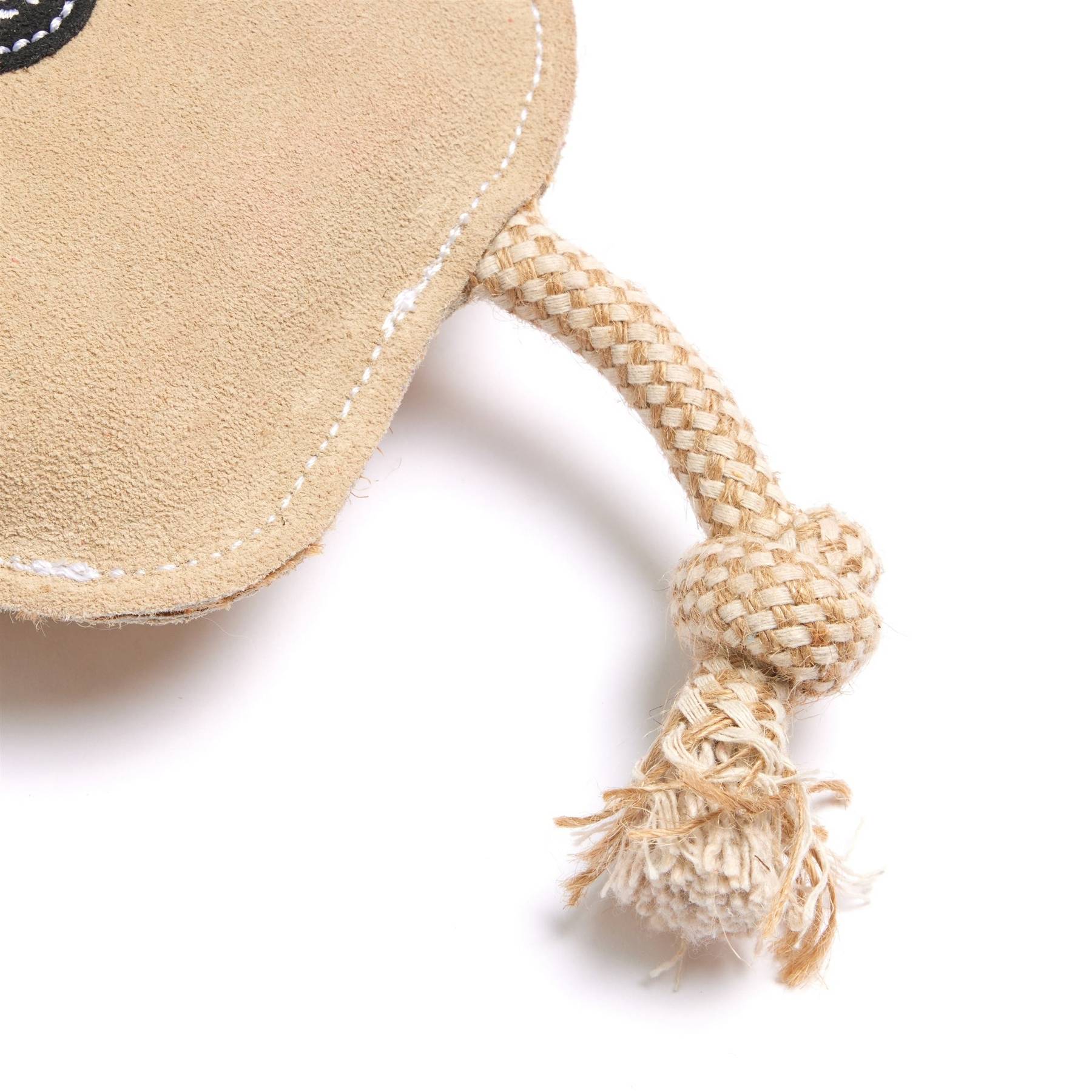 Made from a suede outer with natural jute fibre stuffing and jute rope legs. Jute is a natural, sustainable plant fibre. The suede is a by-product and ensures that this material is not wasted. Tough and long-lasting, made without using any compound that would harm or be released when chewed. Jute is 100% biodegradable.