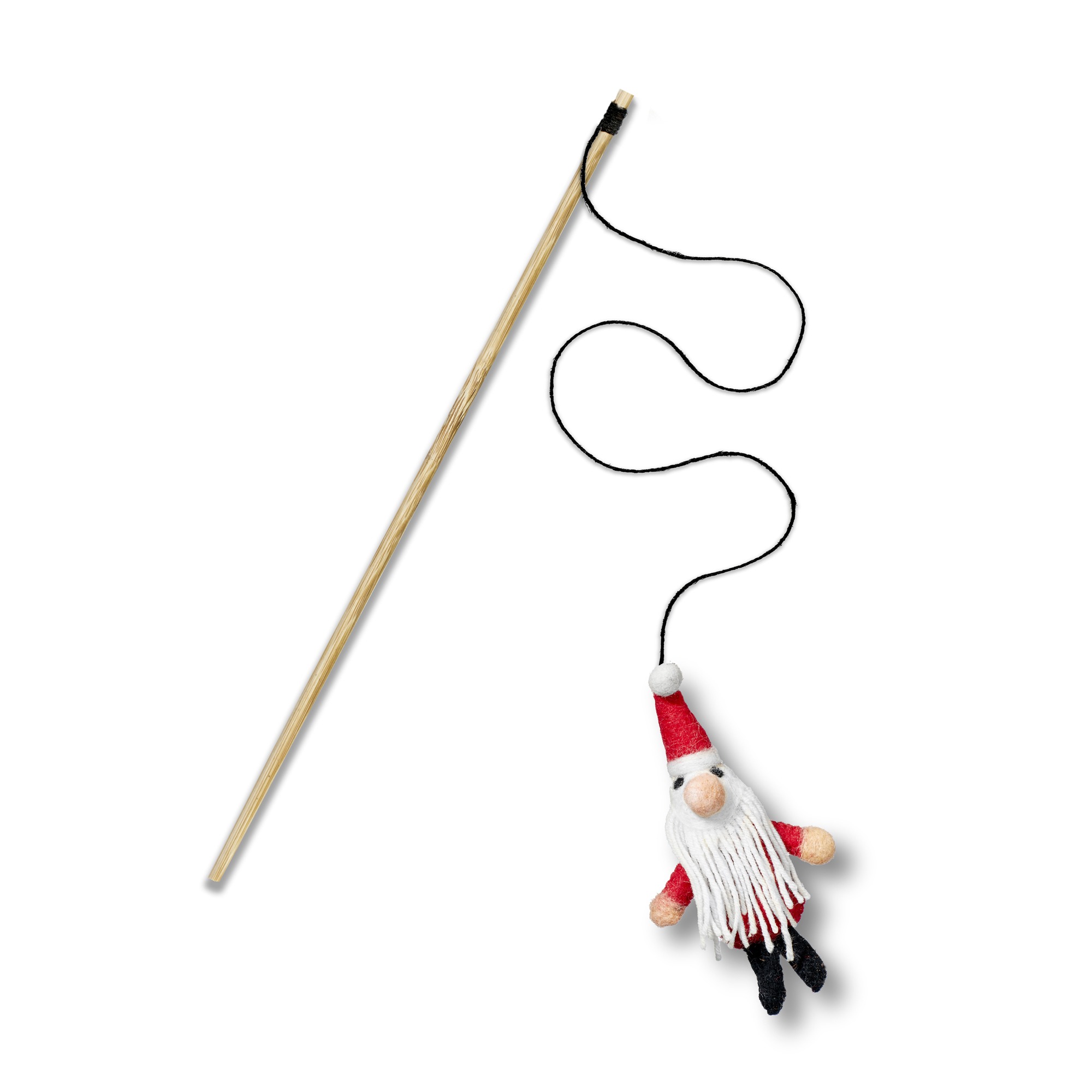 Made with sustainable and natural materials; wool felt, jute string, and a bamboo wood stick. Produced without using any added compound that would harm or be released when chewed.