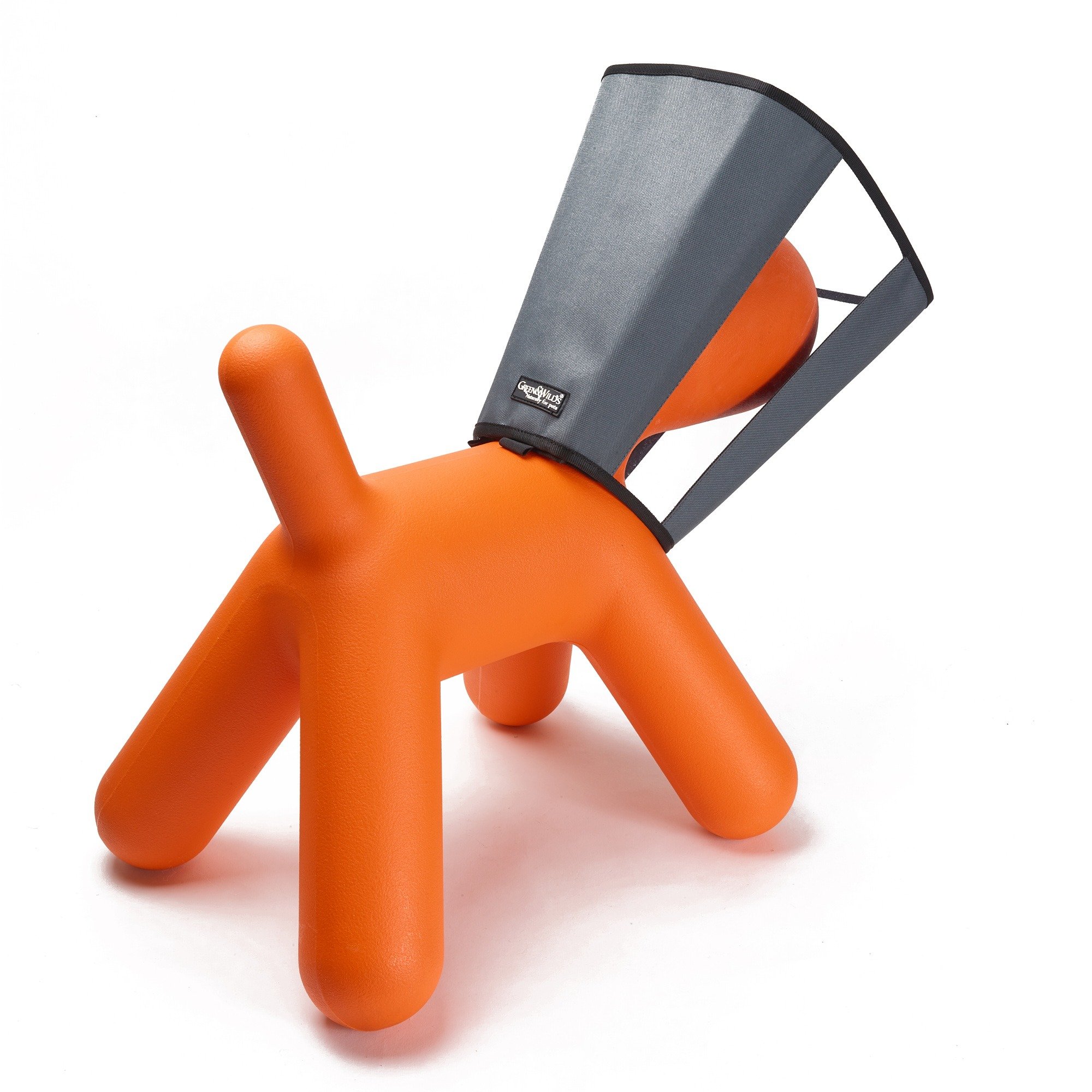 The clear side vision panels help your dog feel less isolated and therefore, less stressed whilst wearing it, and the flexible material aids a more comfortable night's sleep.
