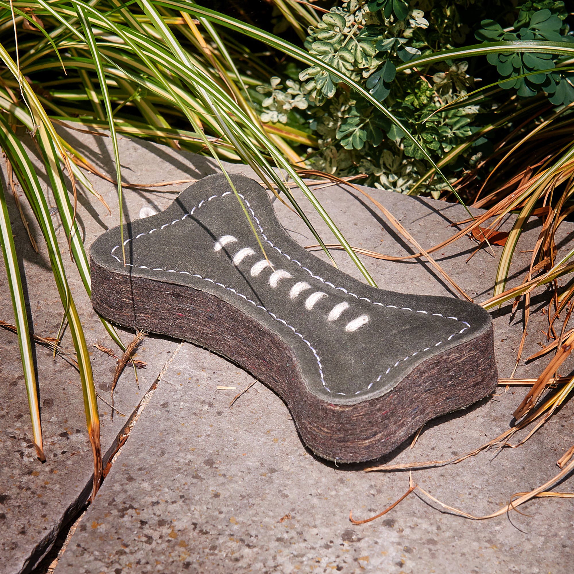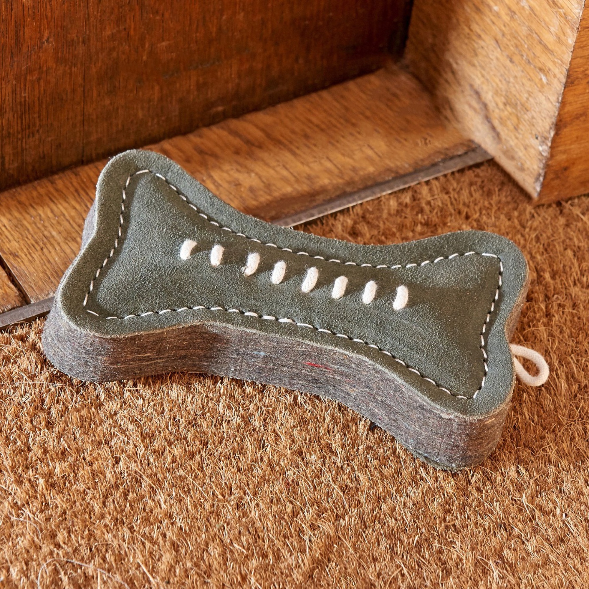 Our Green Bone is a fun toy made from many layers of compressed felt and covered in soft suede. A smaller-sized toy that is good for little dogs.