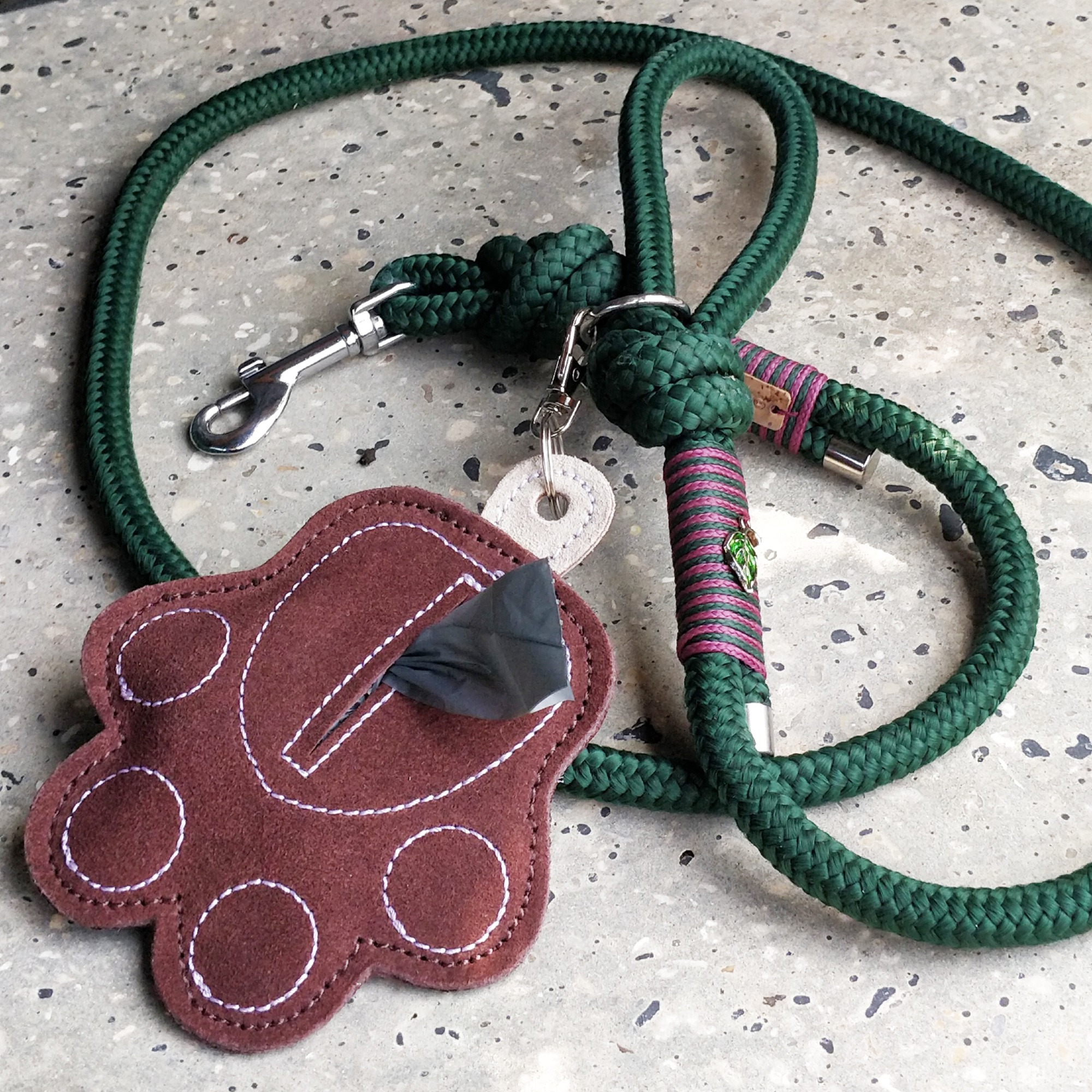 100% real suede poo bag pouch. This fun poo bag pouch is made from fine, brown, suede, holds 3 or 4 bags (which should be enough for most regular movers) and comes complete with a chrome spring clip to attach to a lead, dog walking bag or your clothes. If you are fed up of plastic holders, your pockets, or tying bags around a lead (as we were) you’ll love one of these. A lovingly crafted pouch, fit for any high street, dog field or walk.