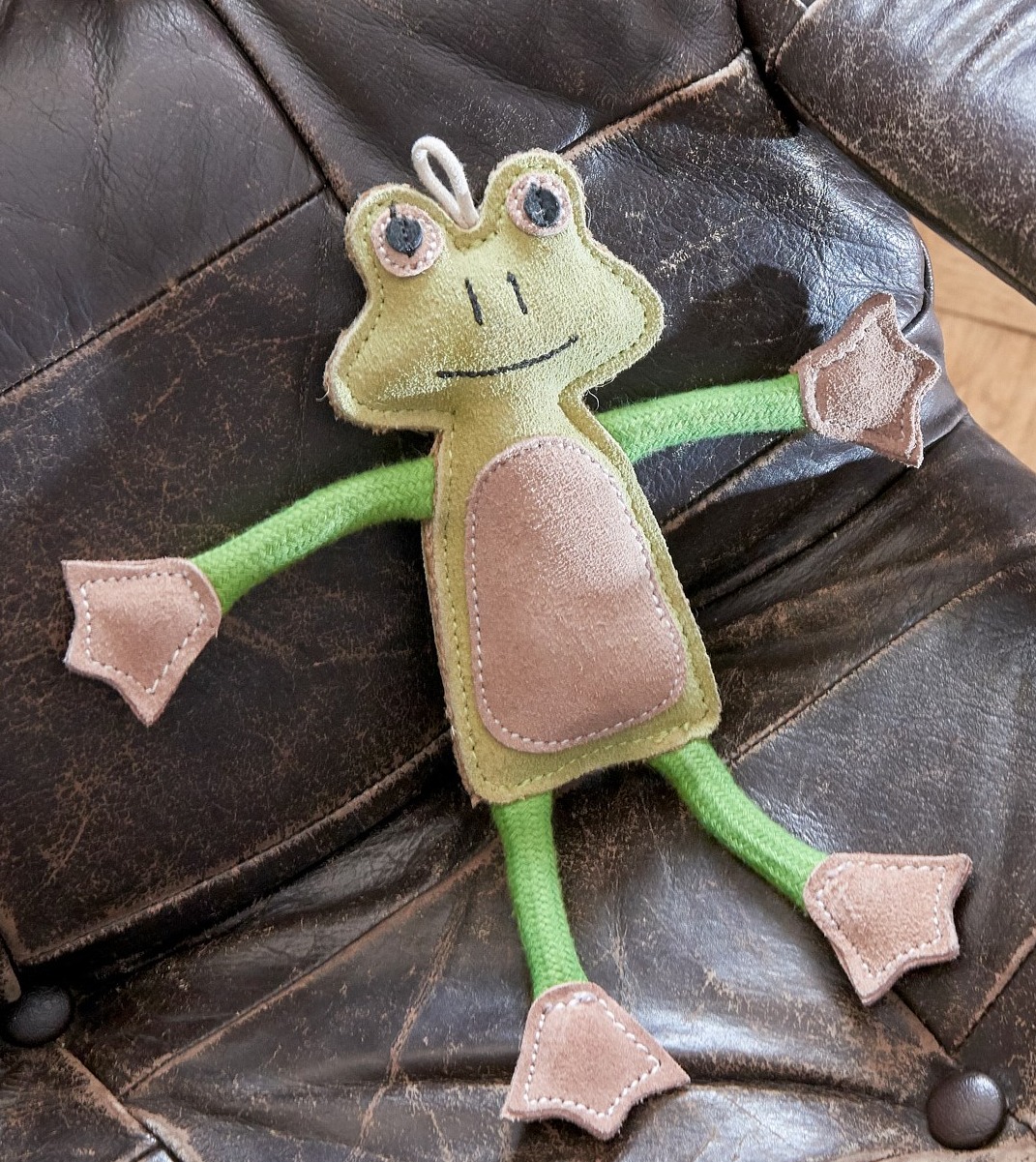 Francois le Frog is a fun toy made from sustainable jute and covered in soft suede.