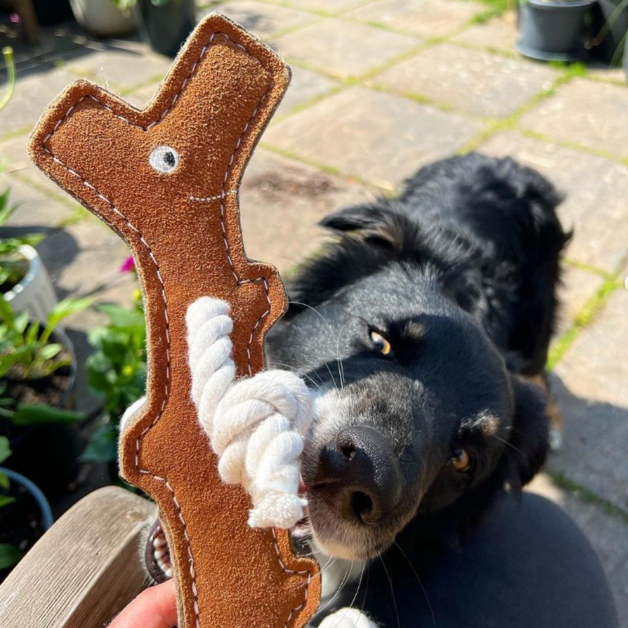 Made from layers of compressed felt stitched over with soft suede and jute rope arms and legs, he's a real must-have in your dog's toy box!