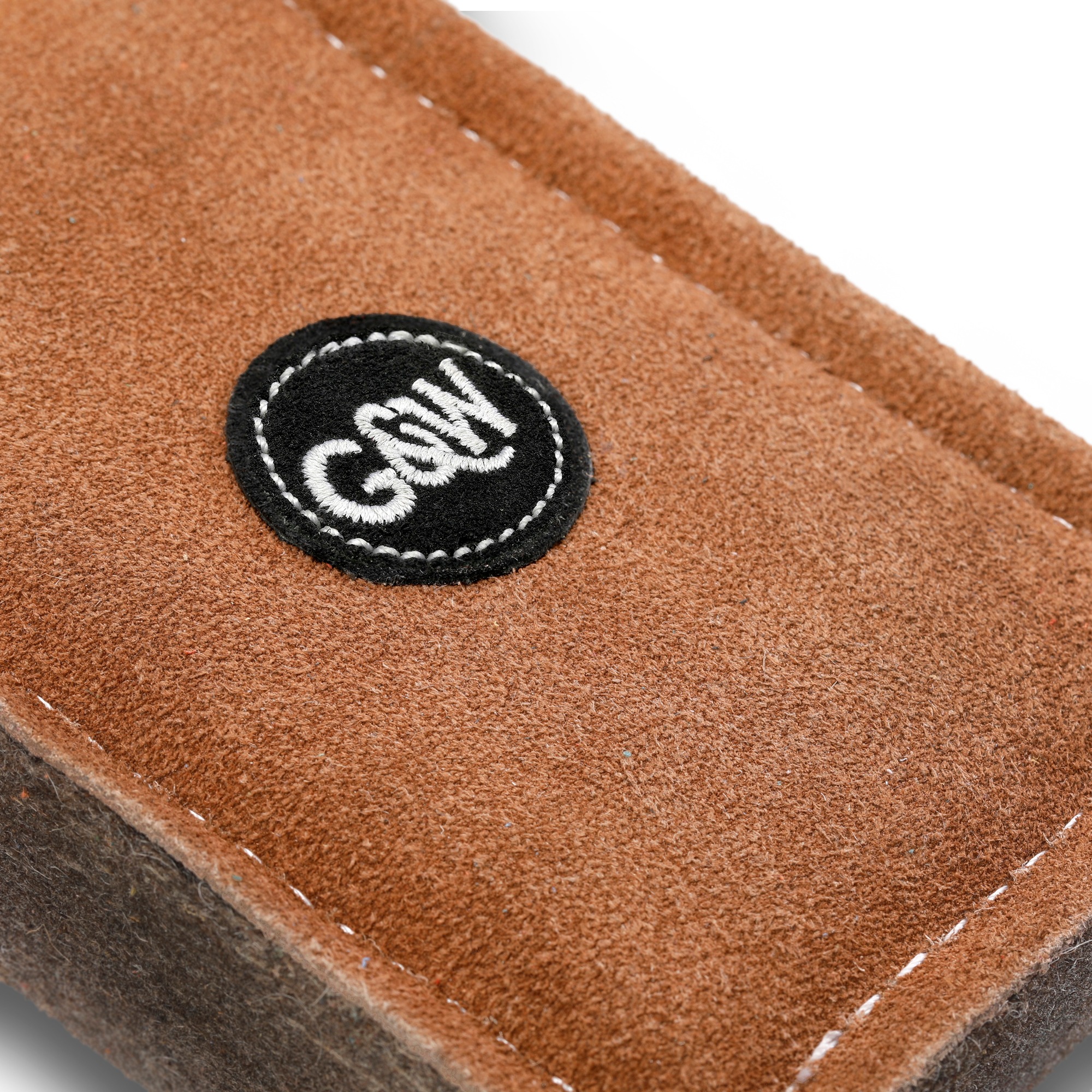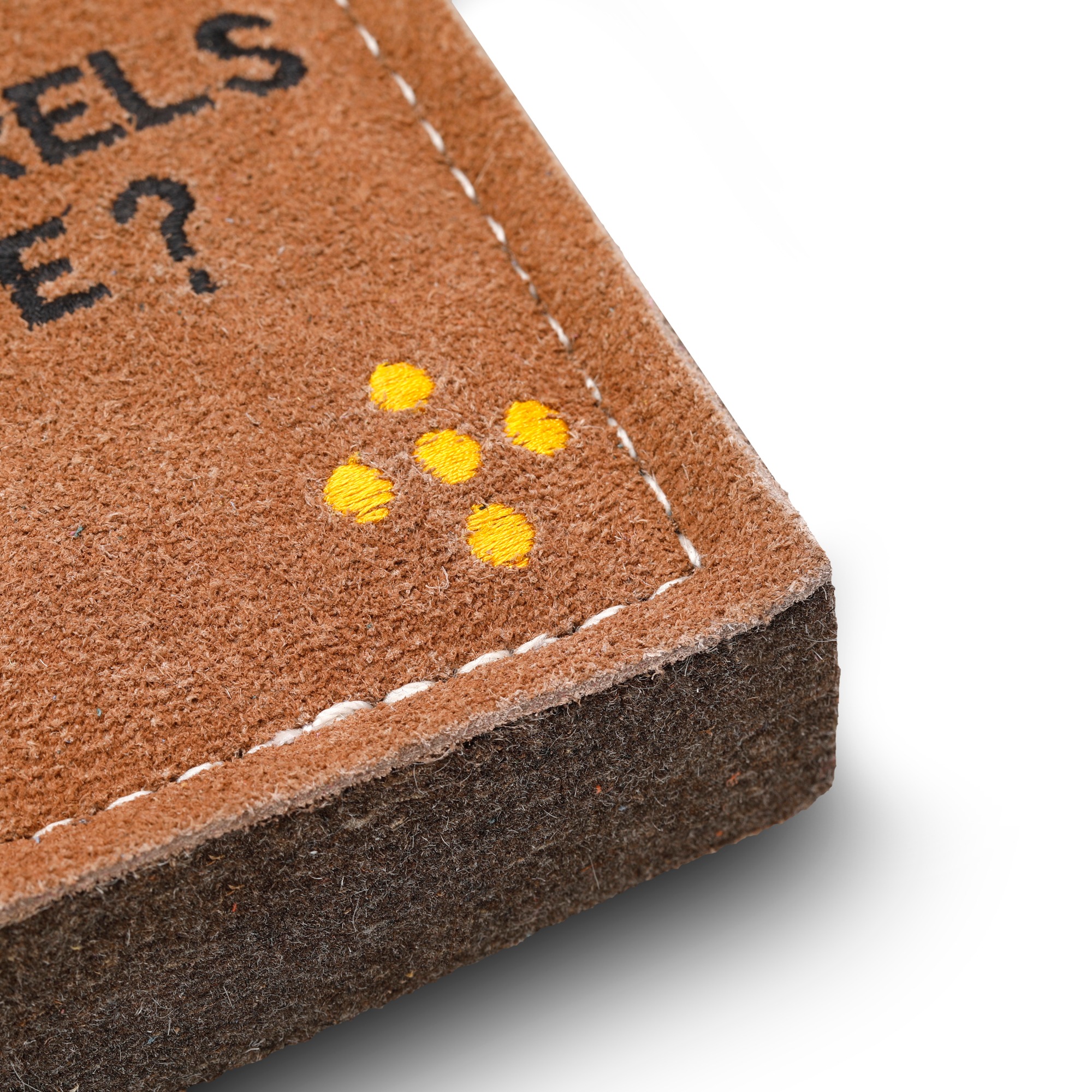 Made from layers of compressed felt and stitched over with soft suede. Wool felt is biodegradable. The suede is a by-product, ensuring that this material is not wasted.